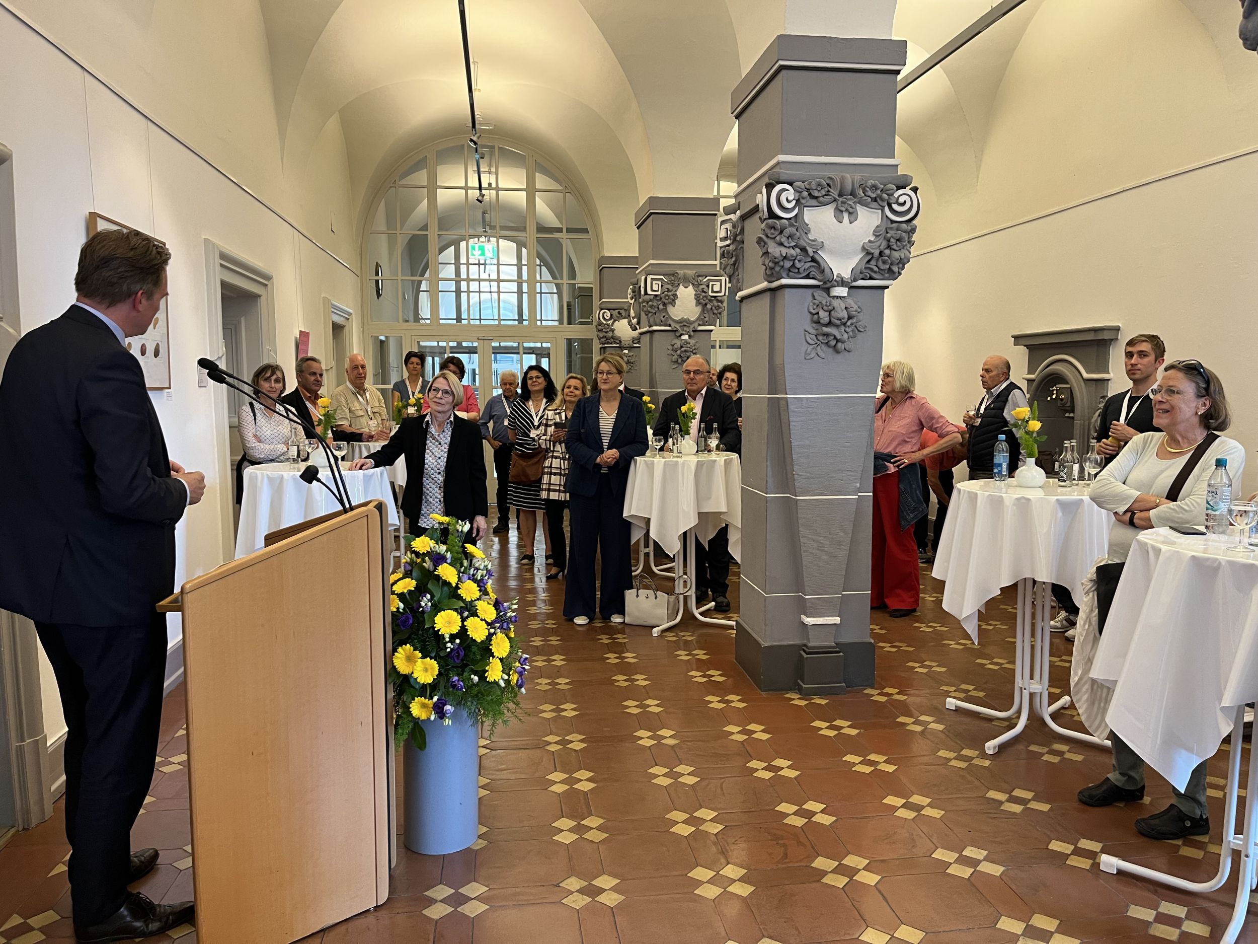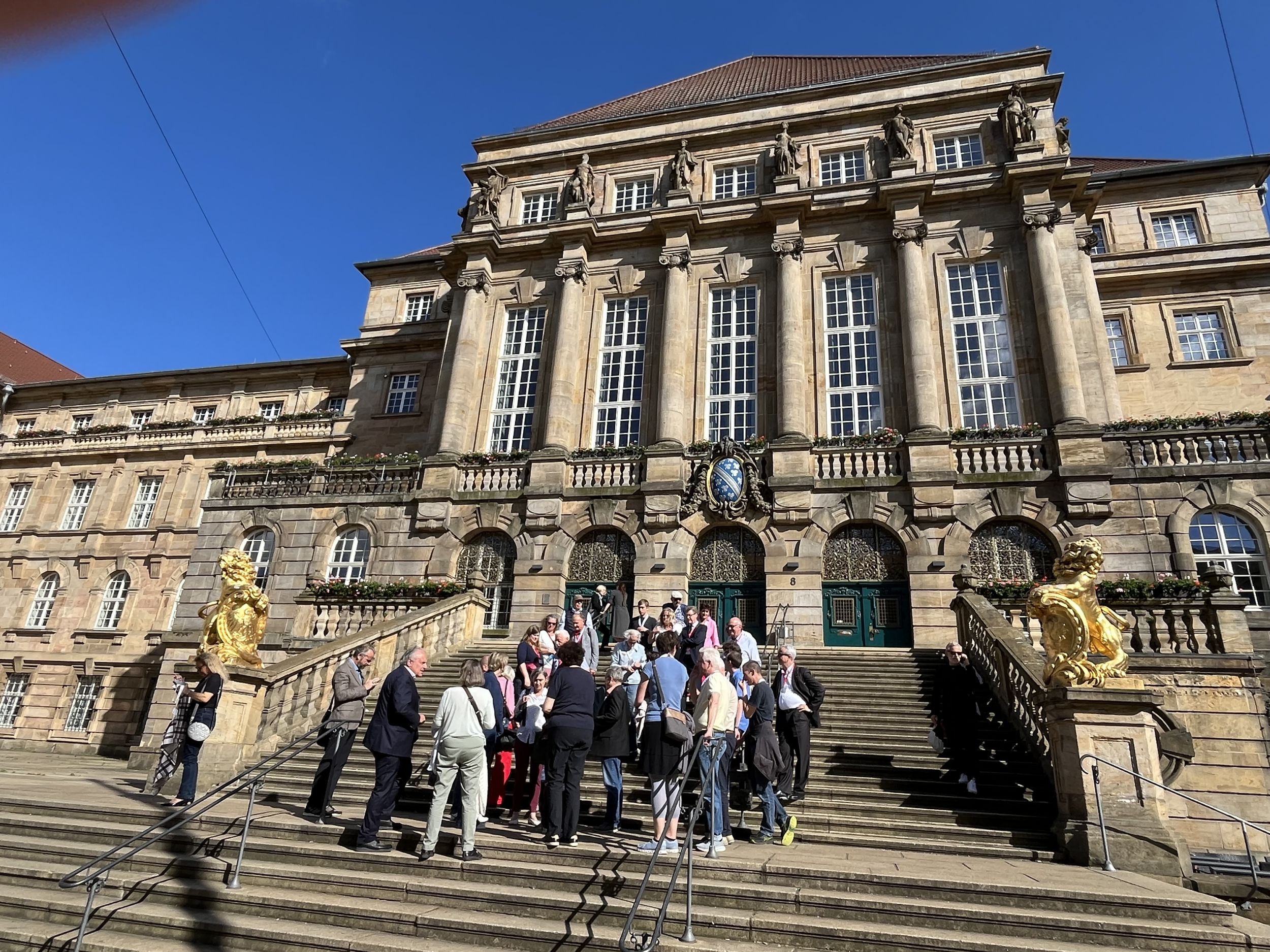 Die Konferenzmitglieder wurden im Rathaus zu Kassel empfangen. Die Botschafterin Livia Leu sprach die Grußbotschaft. Ein Gruppenfoto auf der Treppe war selbstverständlich.