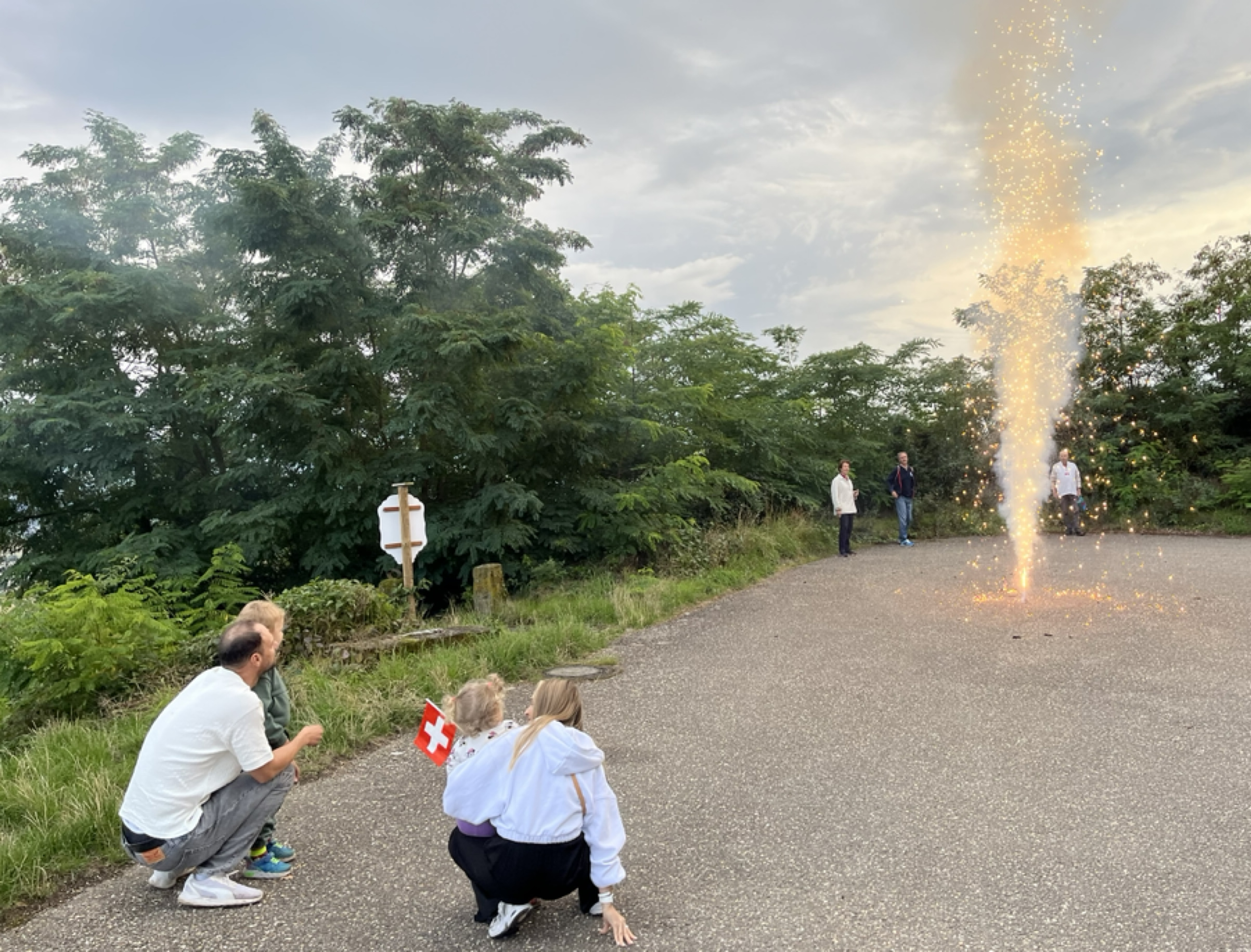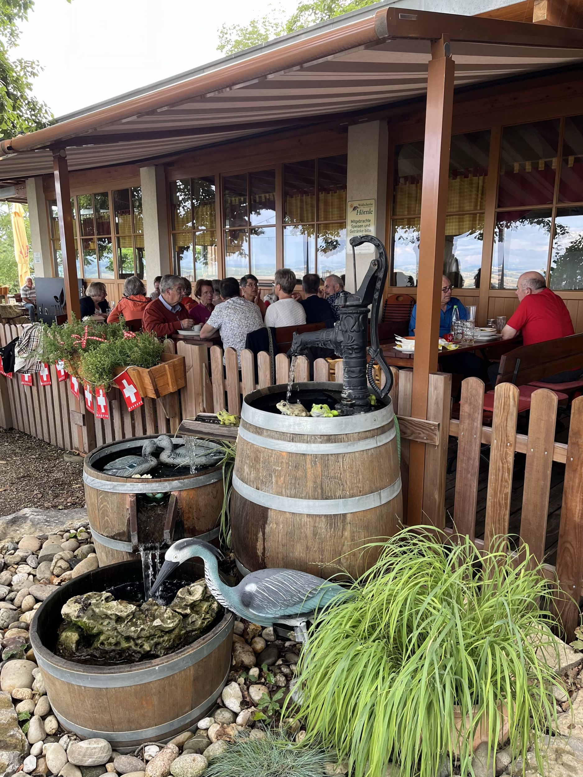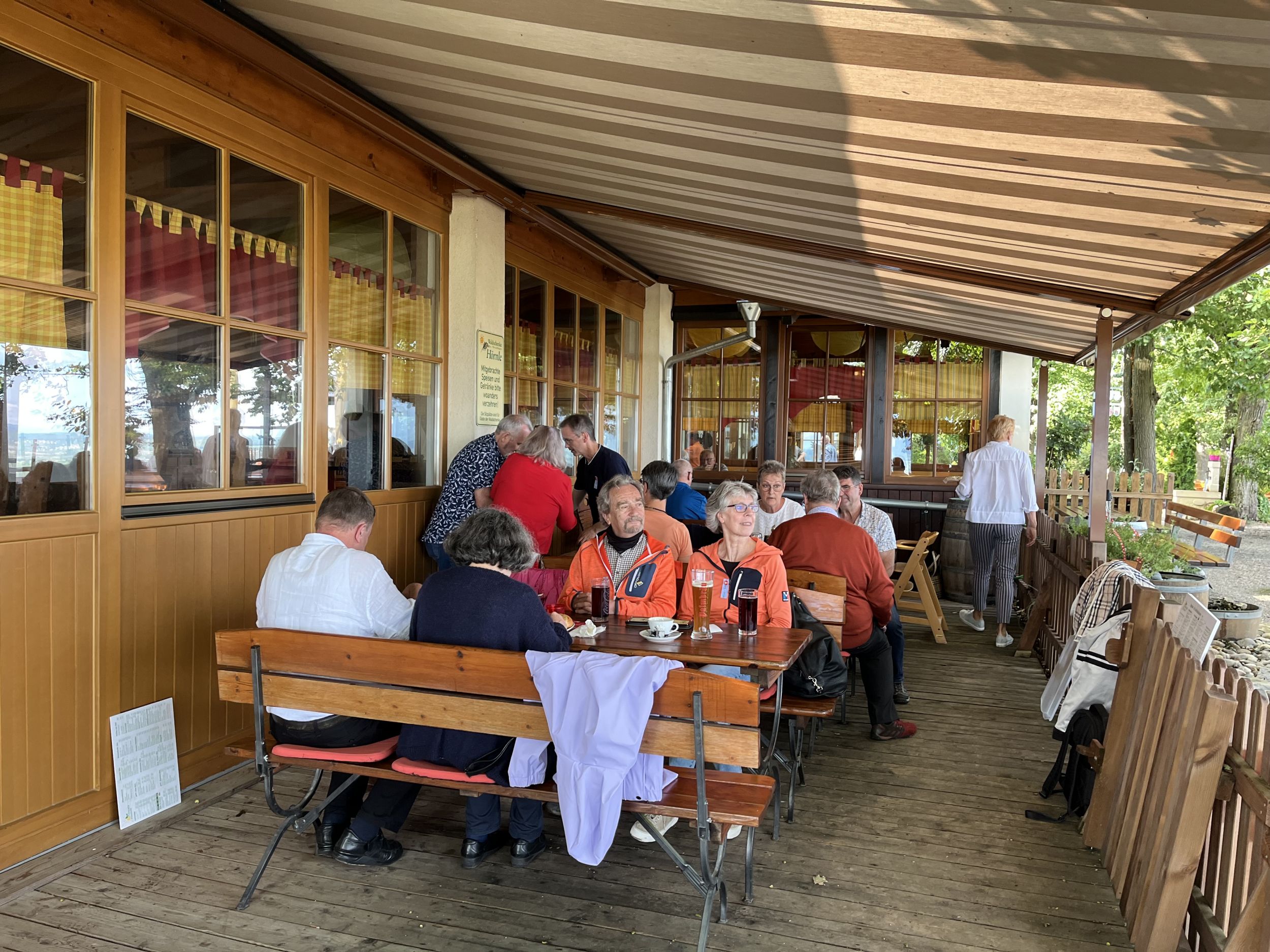 In der Waldschenke „Hörnle“ wurden wir mit gutbürgerlicher Küche verwöhnt. Von der Terrasse hatte man einen atemberaubenden Blick über das gesamte Zabergäu. Ein traditionelles Feuerwerk erfreute Groß und Klein.